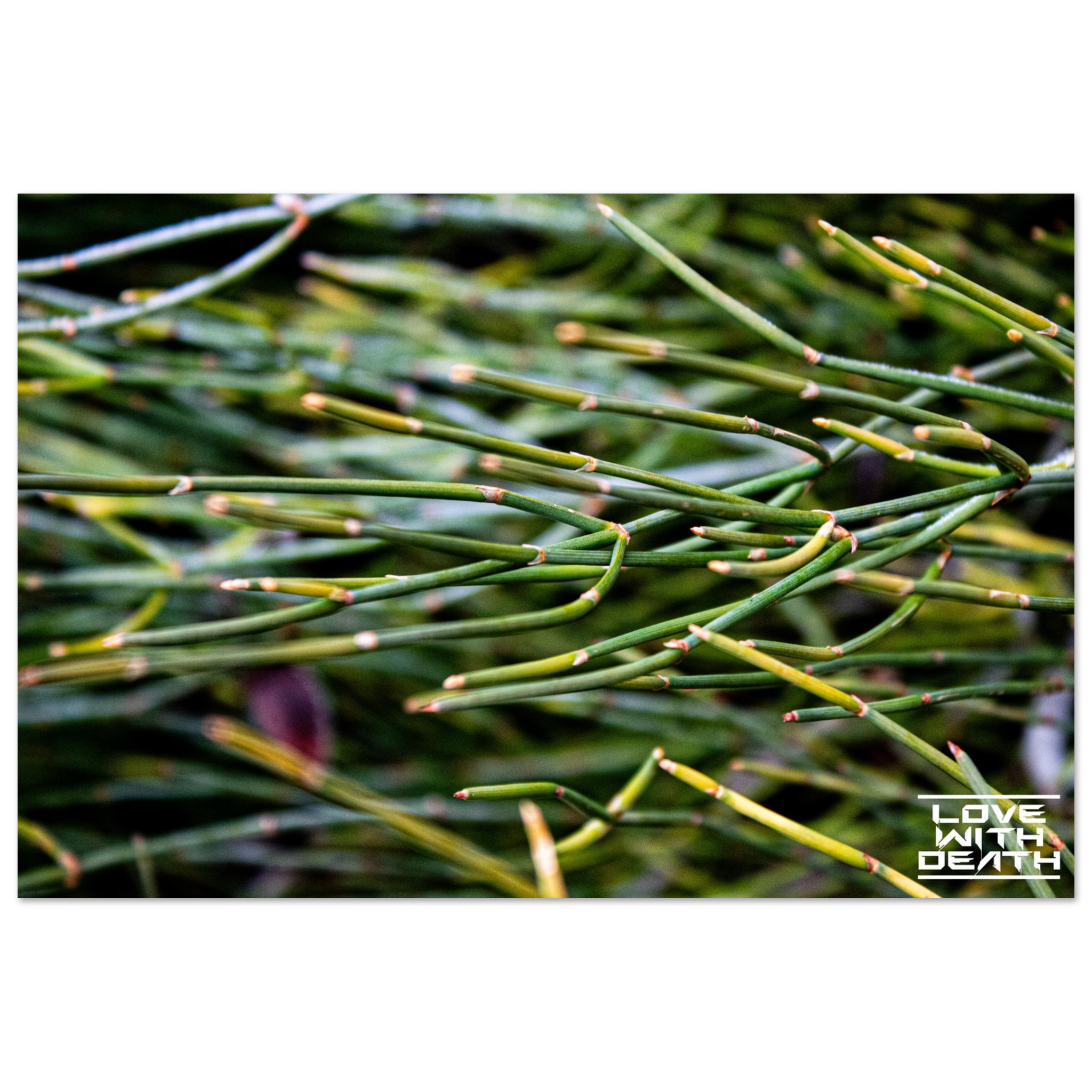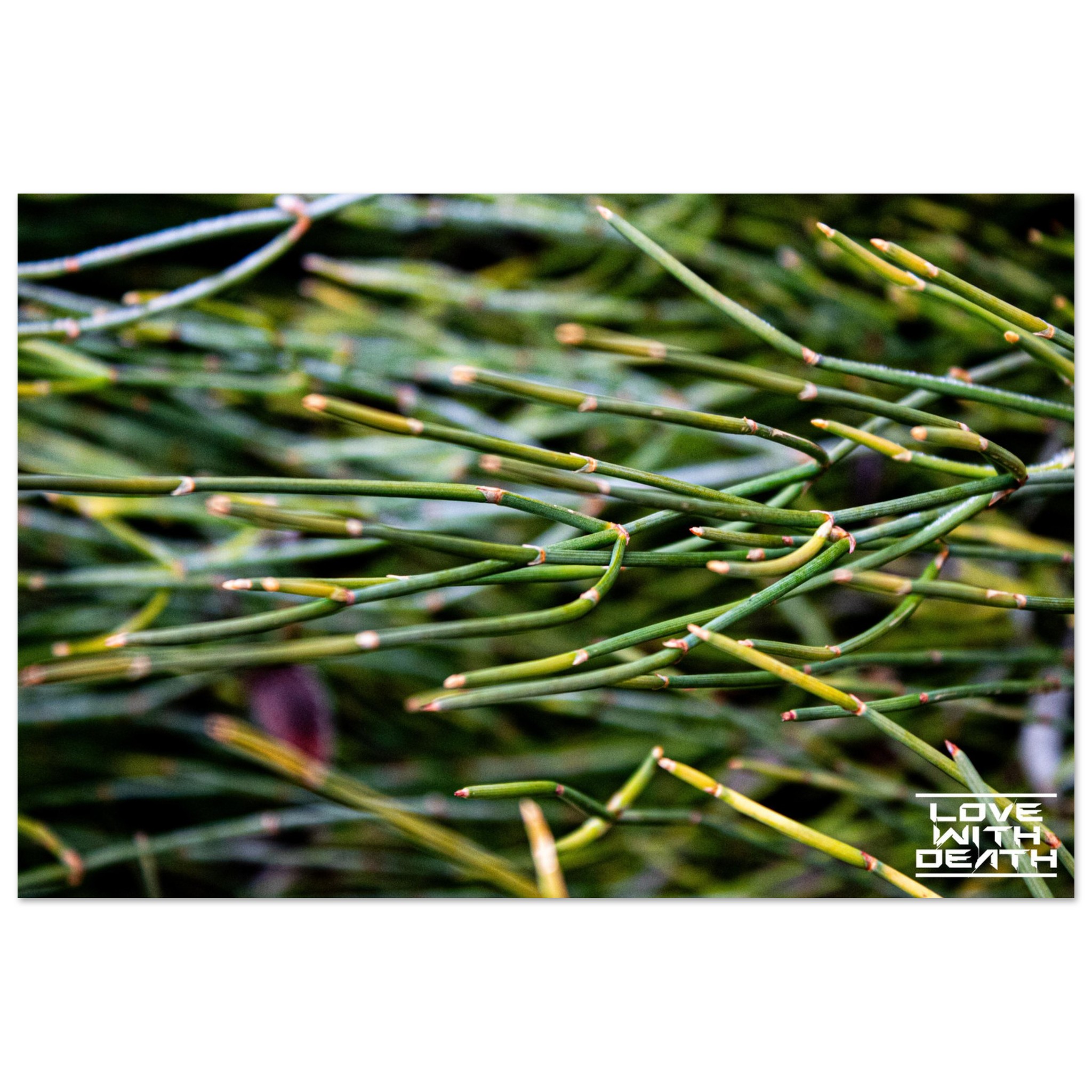 This photo captures a close-up of delicate, needle-like plants arranged in a complex yet harmonious pattern. The fine green-yellow tips add a touch of dynamism, while the soft color contrasts highlight the organic aesthetic.