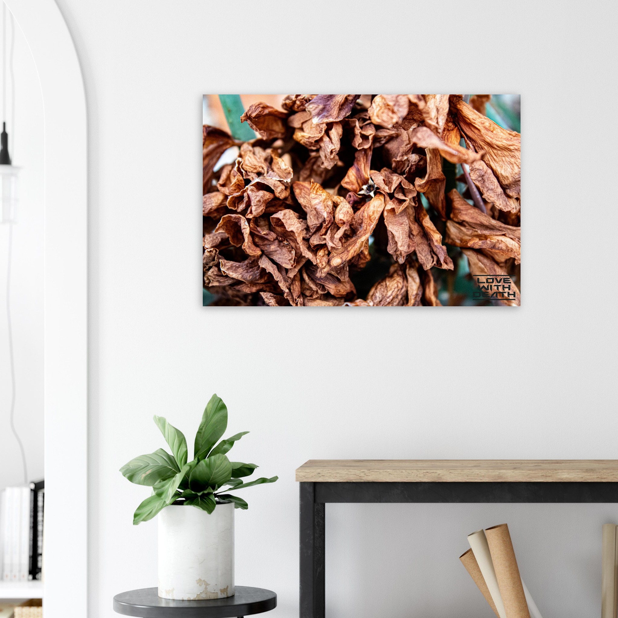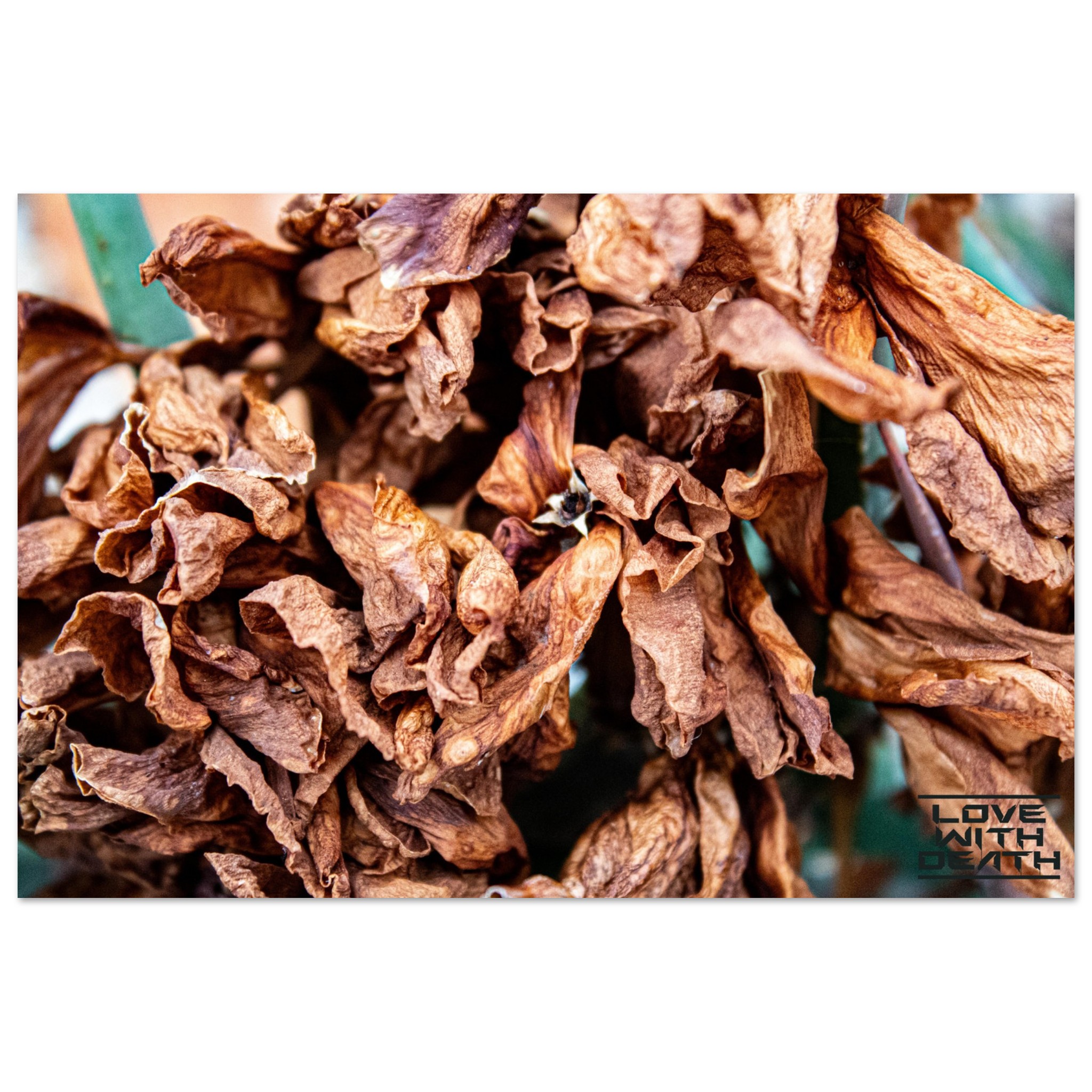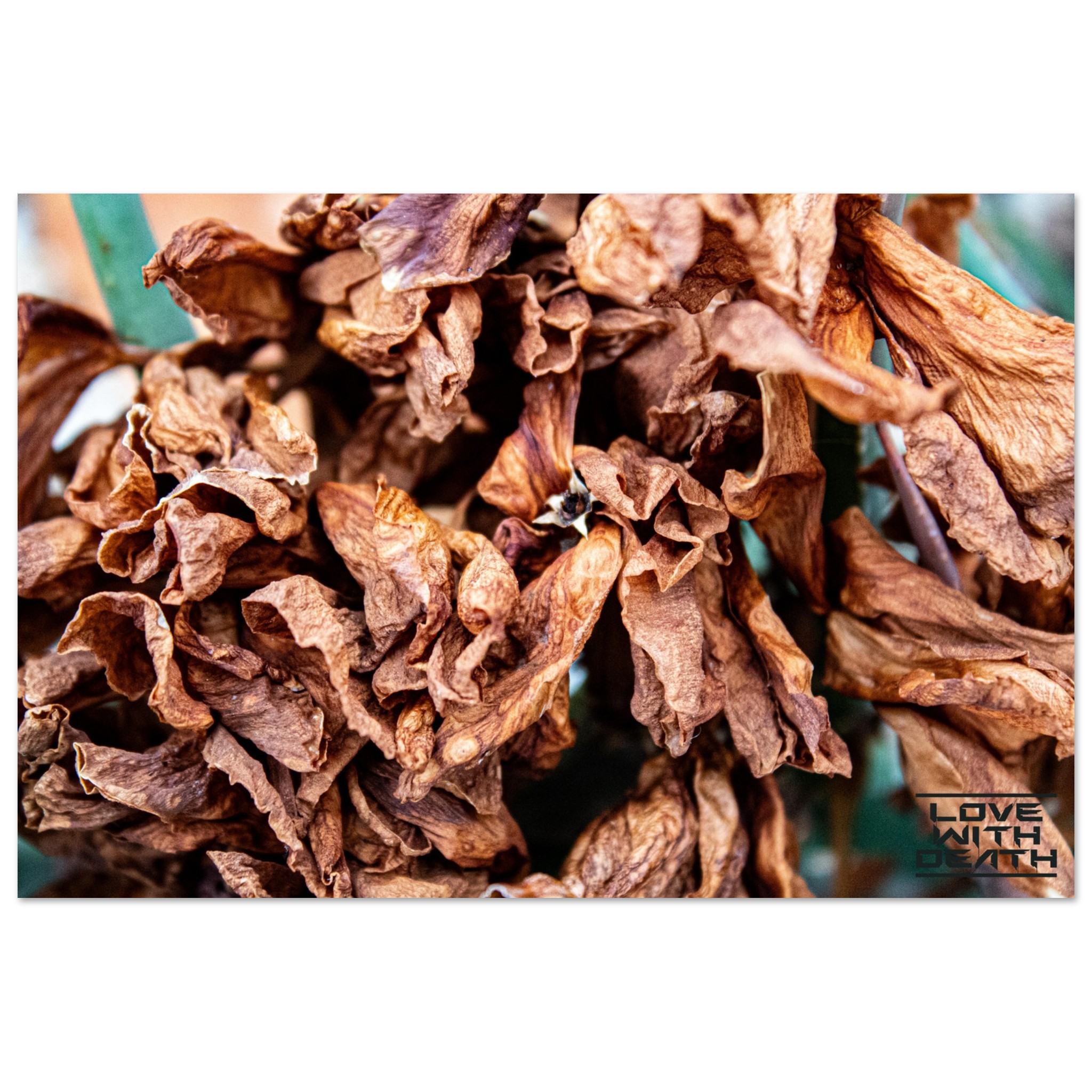 A close-up of dried leaves, showcasing their fragile structure and warm color palette, symbolizing the cycle of life and impermanence. This scene invites contemplation of the beauty found in transience.