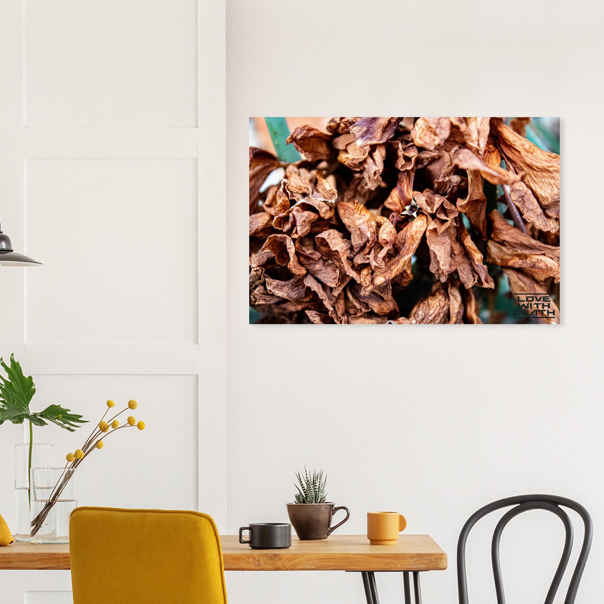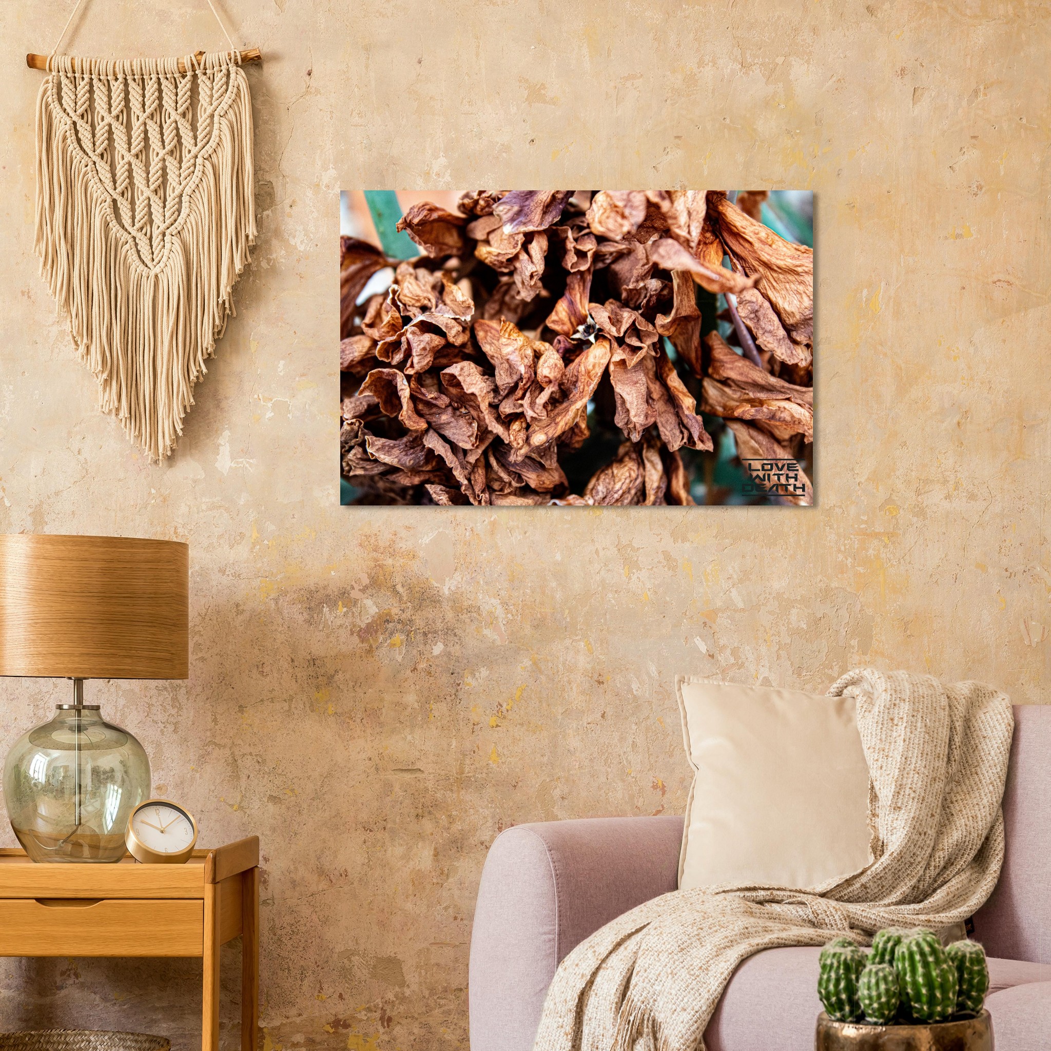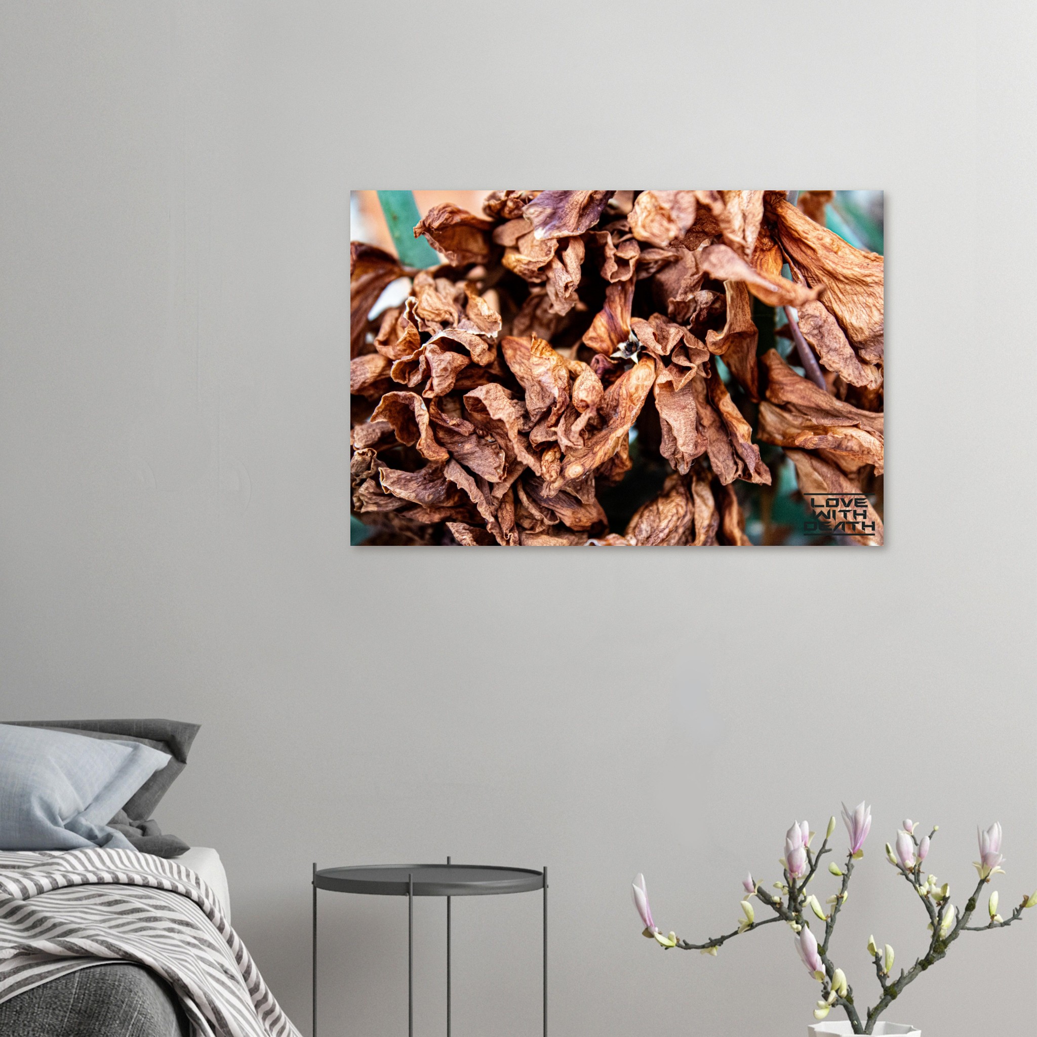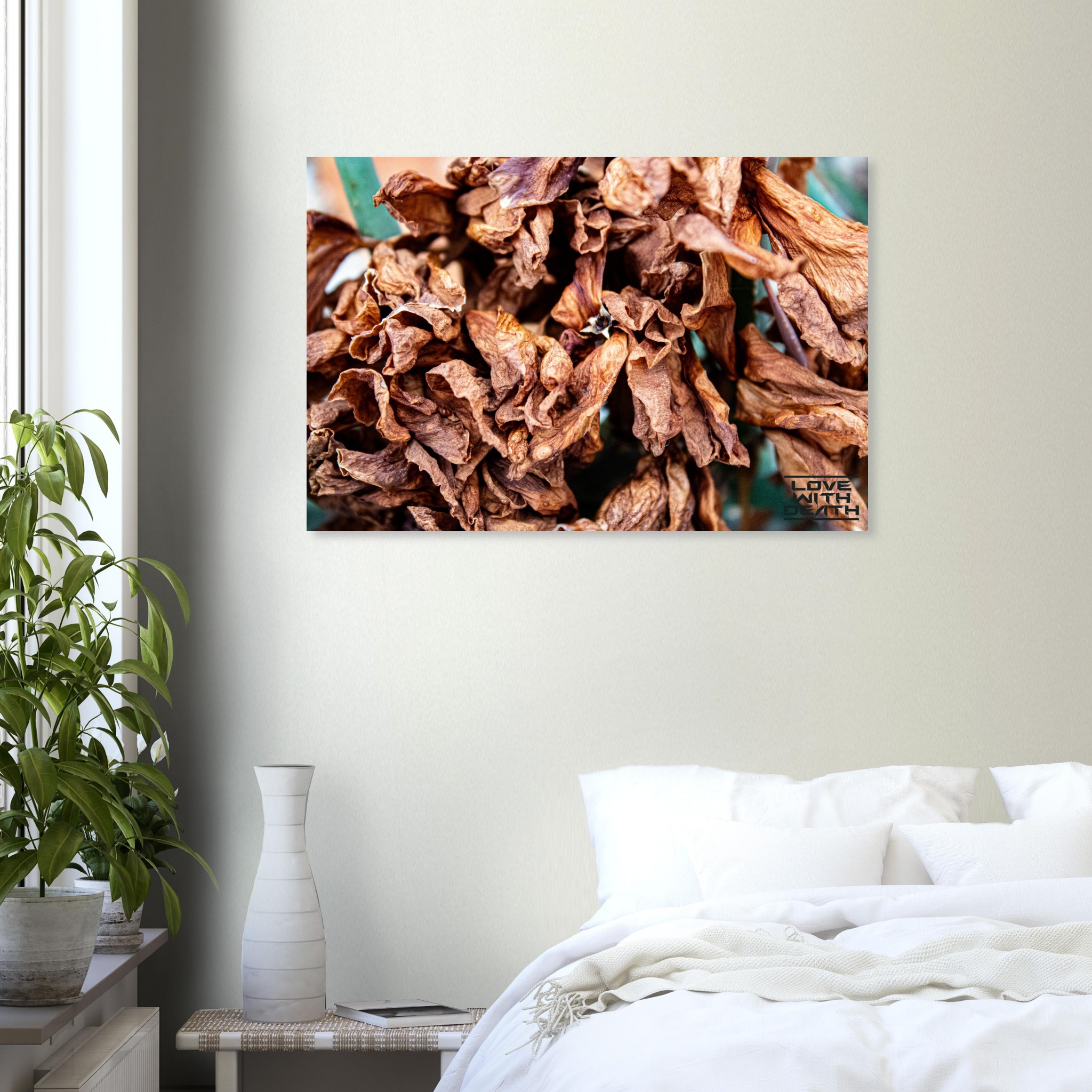 A close-up of dried leaves, showcasing their fragile structure and warm color palette, symbolizing the cycle of life and impermanence. This scene invites contemplation of the beauty found in transience.