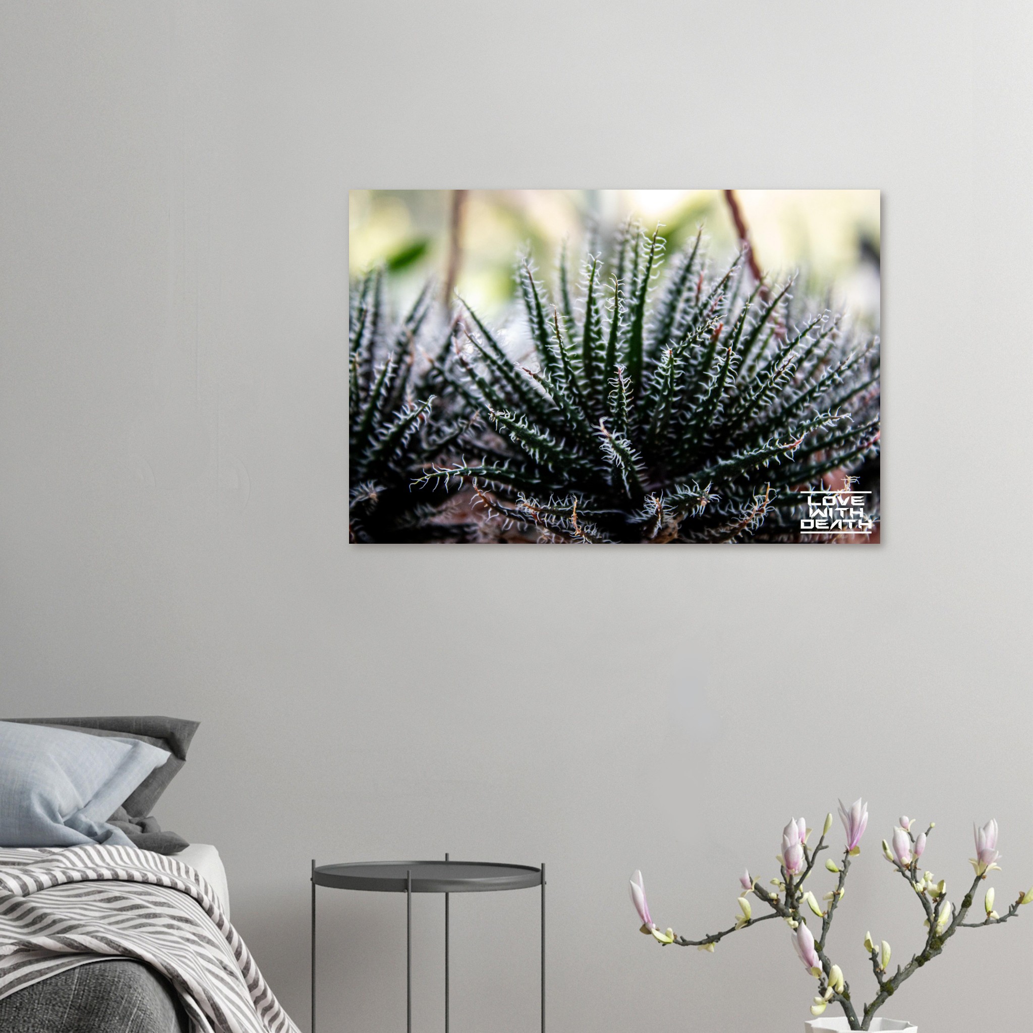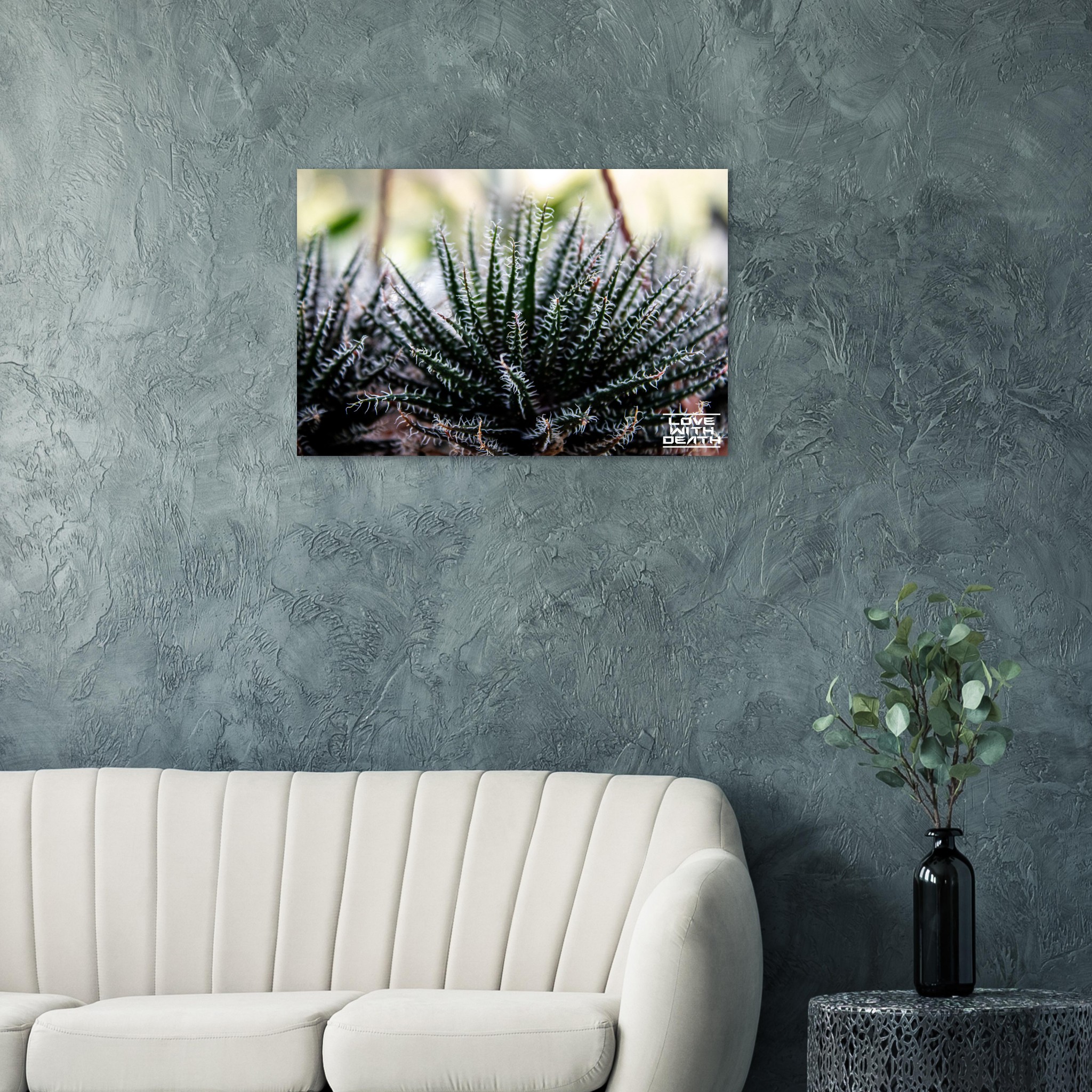 The geometric arrangement of the leaves appears almost like a natural artwork – a play of symmetry, structure, and texture. The interplay of light and shadow emphasizes the depth and gives the plant a vibrant, dynamic presence. This image showcases the rugged beauty of nature, reminding us of the resilience and uniqueness of desert plants.
