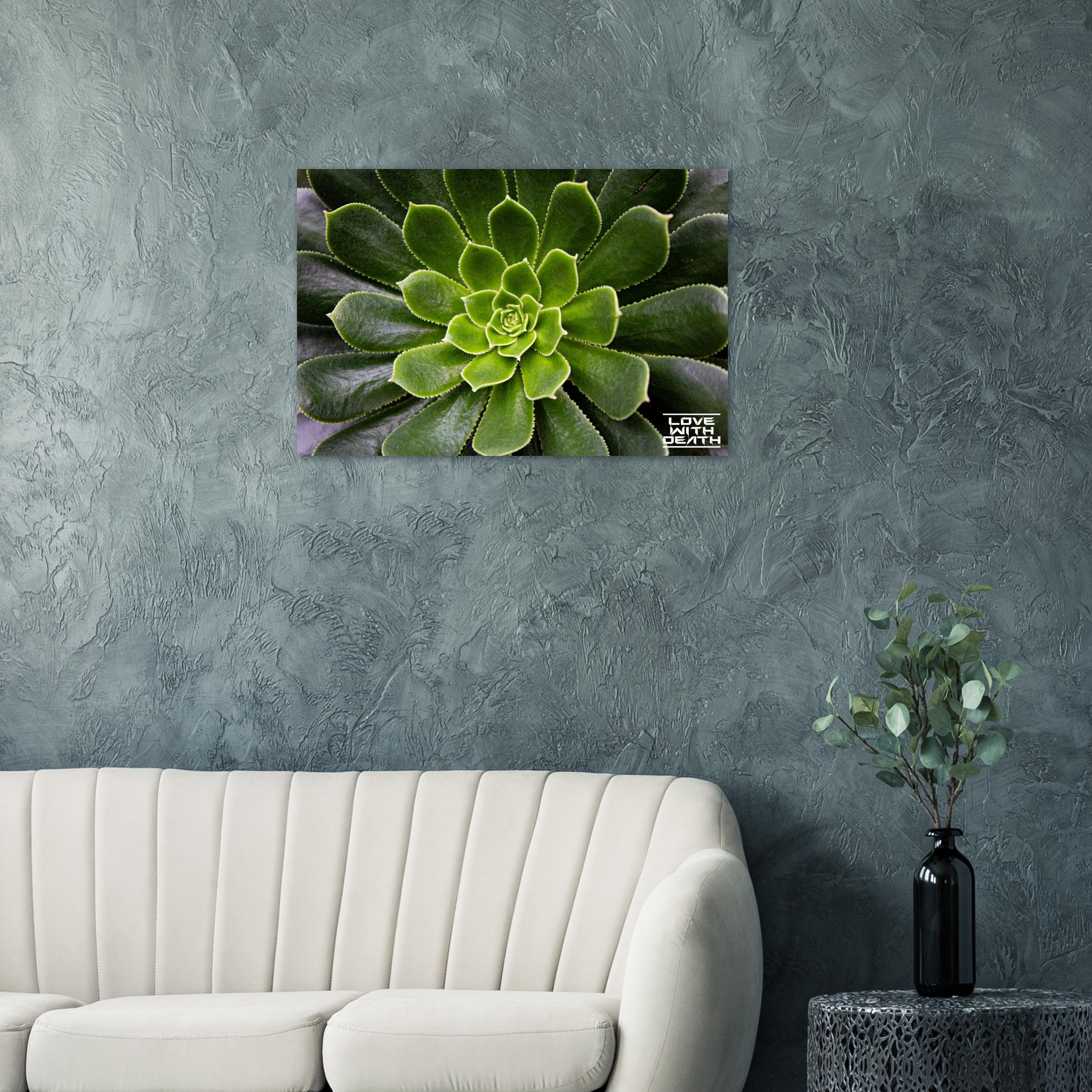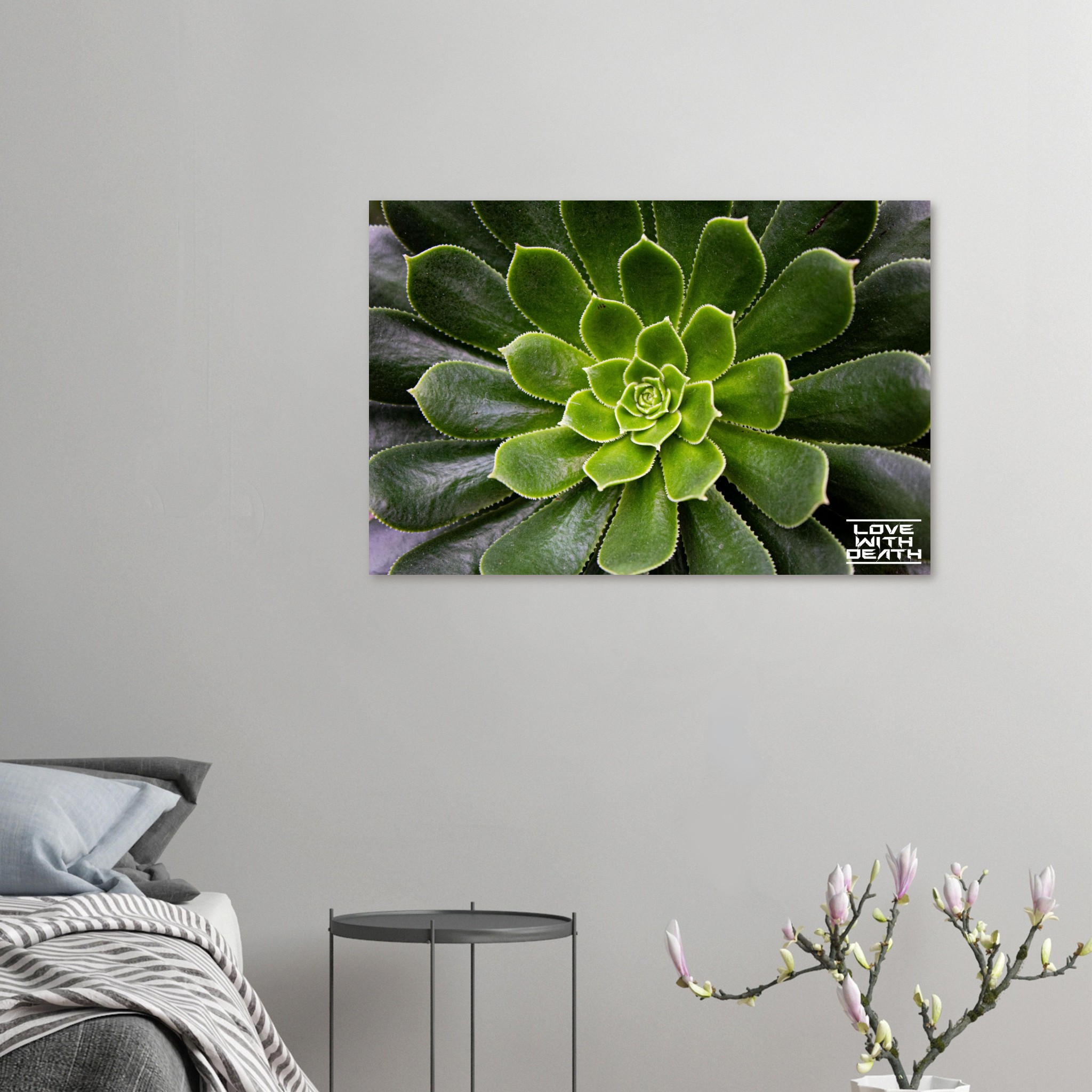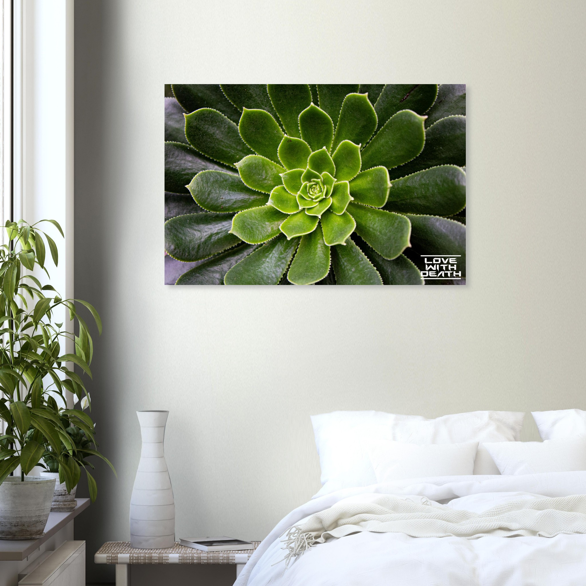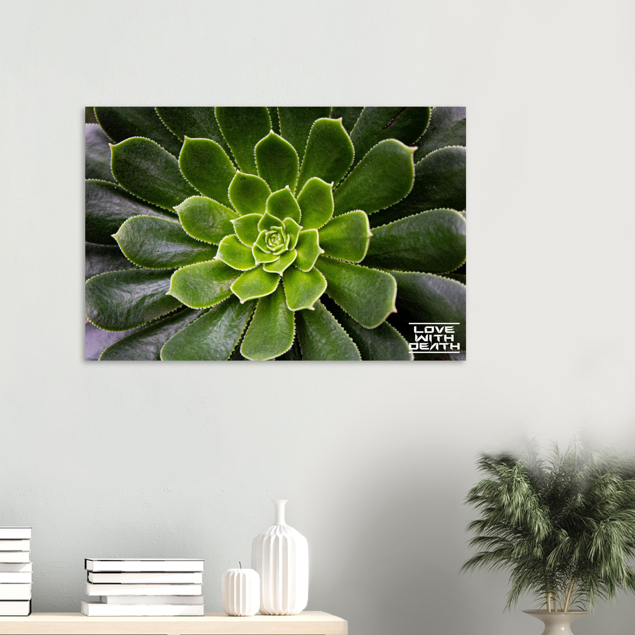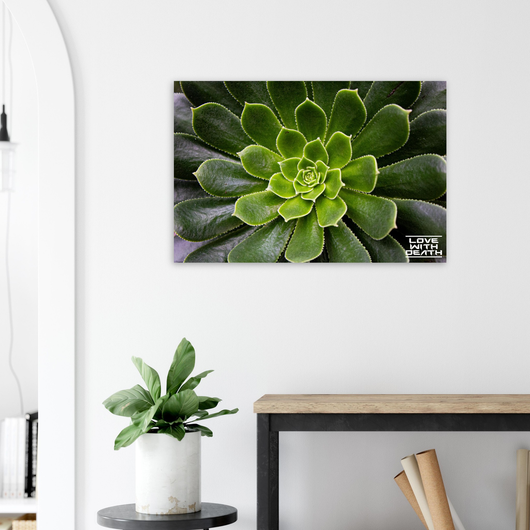 A close-up of a green succulent with leaves arranged in a perfect spiral. The sharp, serrated edges add a striking structure, while the deep green hues symbolize freshness and life. This image captures the fascinating geometry and symmetry of nature.